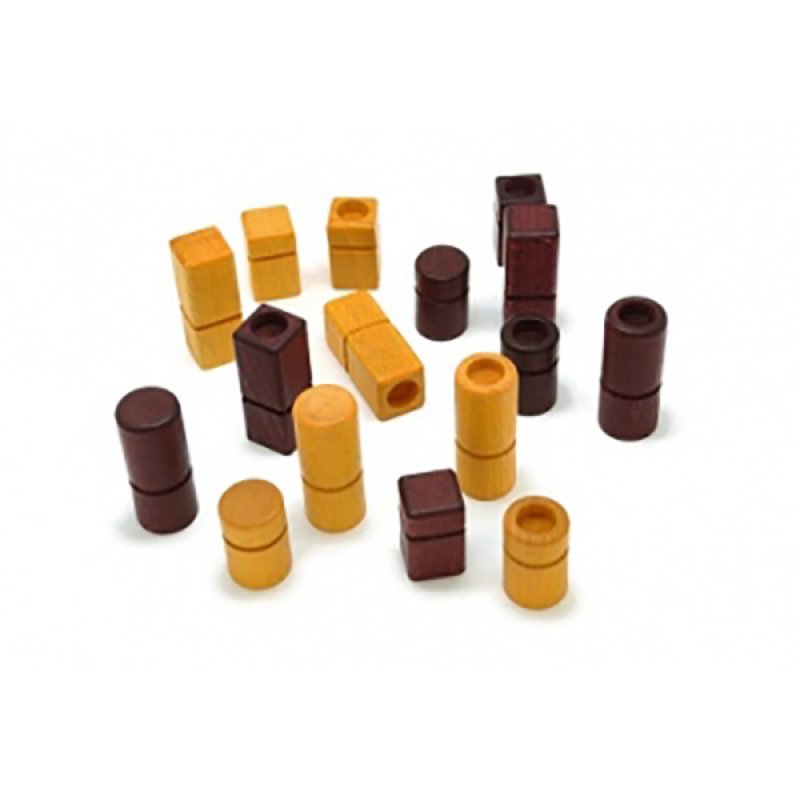 محتویات جعبه بازی فکری گیگامیک: صفحه چوبی- 16 مهره چوبی با ویژگی های متفاوت